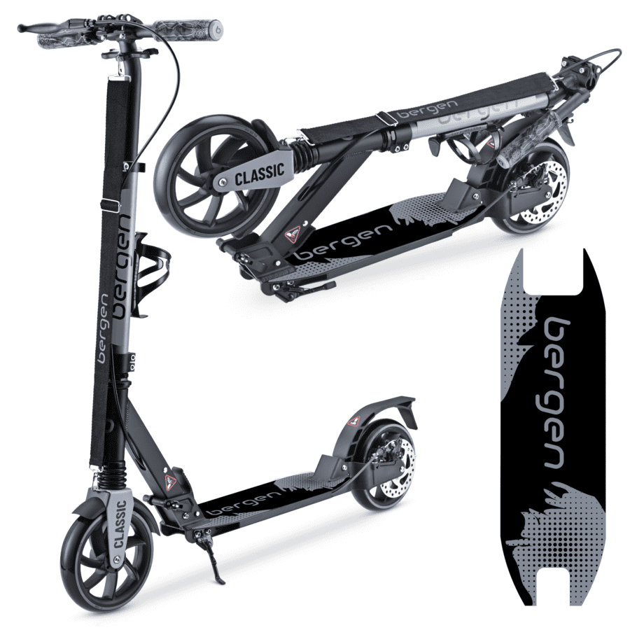Wszystkie te cechy sprawiają, że hulajnoga Bergen CLASSIC to jeden z najczęściej wybieranych modeli, który spełnia oczekiwania najbardziej wymagających użytkowników. Niezależnie od tego, czy szukasz hulajnogi do codziennych dojazdów, czy rekreacyjnych przejażdżek, ten model dostarczy Ci niezrównanej wygody i trwałości na długie lata.