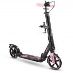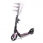 Duża składana hulajnoga dla dzieci i dorosłych, z hamulcem tarczowym, dwoma amortyzatorami, paskiem do noszenia oraz uchwytem na bidon. Urządzenie łączy w sobie nowoczesną technologię z praktycznym designem, gwarantując maksymalne bezpieczeństwo oraz komfort użytkowania. Dodatkowo, hulajnoga świetnie prezentuje się w czarnym kolorze z różowymi akcentami, co nadaje jej wyjątkowego charakteru i sprawia, że jest idealna dla kobiet i dziewczynek, które cenią sobie modny wygląd. Taki unikalny styl łączy w sobie klasykę z nutą kobiecej delikatności, czyniąc z niej nie tylko funkcjonalny, ale również atrakcyjny środek transportu na każdą okazję.
